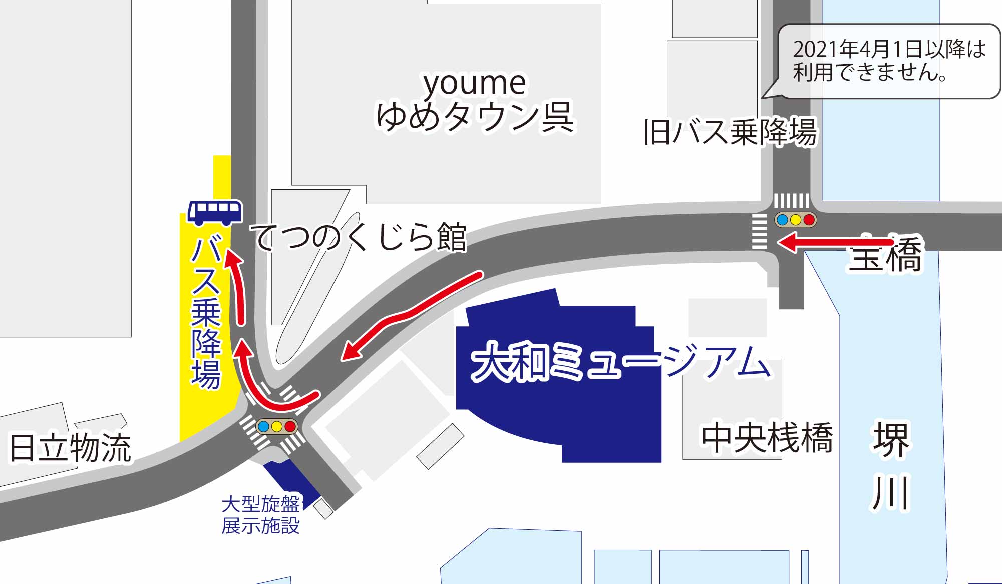 大和ミュージアムの北側、てつのくじら館近くに「バス乗降場」がございます。