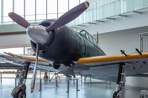 零式艦上戦闘機の開発には、広海軍工廠で研究・開発された技術が活かされました。機体全てを金属で製作する技術、運動性重視から主翼を片方だけで支える強度維持の技術、桁と外板で主翼の強度を保持する技術などは、日本国内では広海軍工廠からはじまりました。