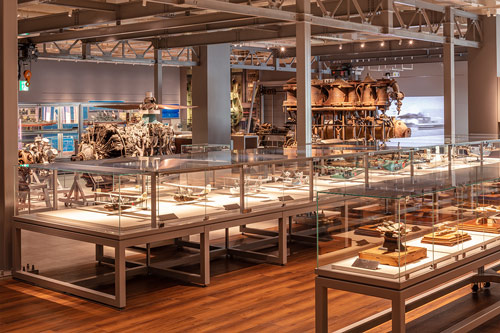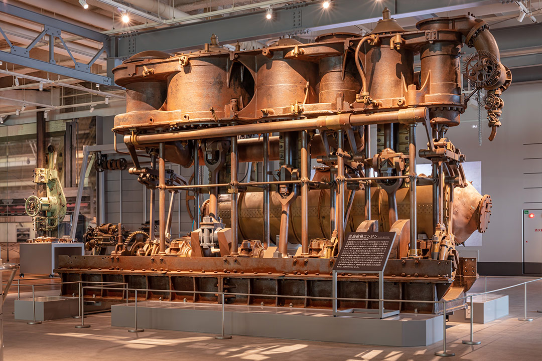 三段膨張蒸気機関などの大型実物資料を展示することで、呉海軍工廠のものづくりのスケール感を実感することができます。