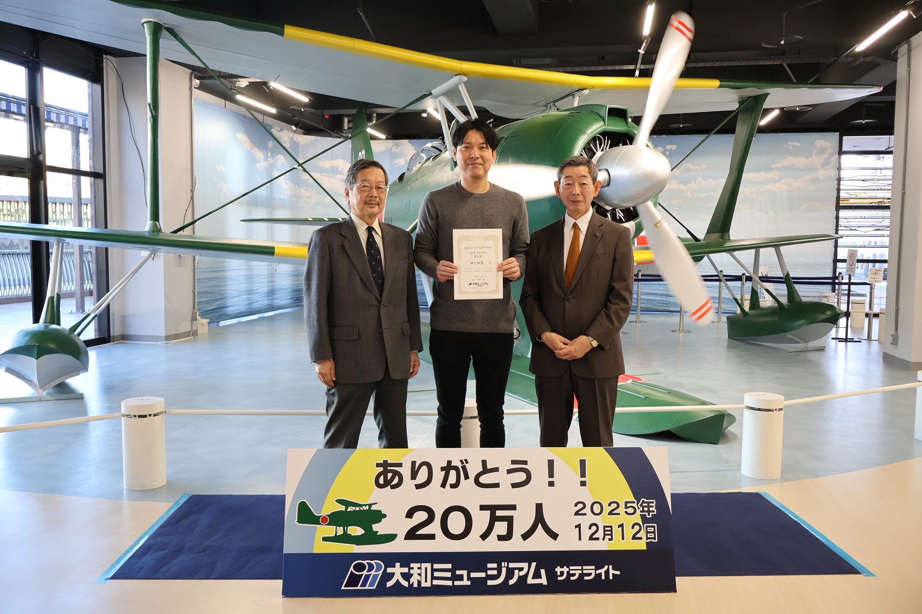 令和7(2025)年12月12日(金)、大和ミュージアムサテライトにて20万人目のご来館者をお迎えし、記念式典を行いました。開館から254日目での達成です。