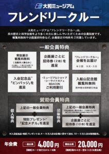 投稿日 2026年04月22日 お知らせ・募集これまでの年度会員「友の会」制度は、令和8(2026)年3月末をもちまして終了いたしました。それに伴い、令和8(2026)年4月23日より新しい年間会員制度「フレンドリークルー」、年度会員制度「フレンドリークルー賛助会員」へ移行いたします。入会ご希望の方は、ショップ棟に併設しております【チケット売り場】へお越しいただき、チケット発券スタッフにお申し付けください。※特典や年会費などは以下をご確認ください。※年会費は「友の会」の金額から変更となっております。