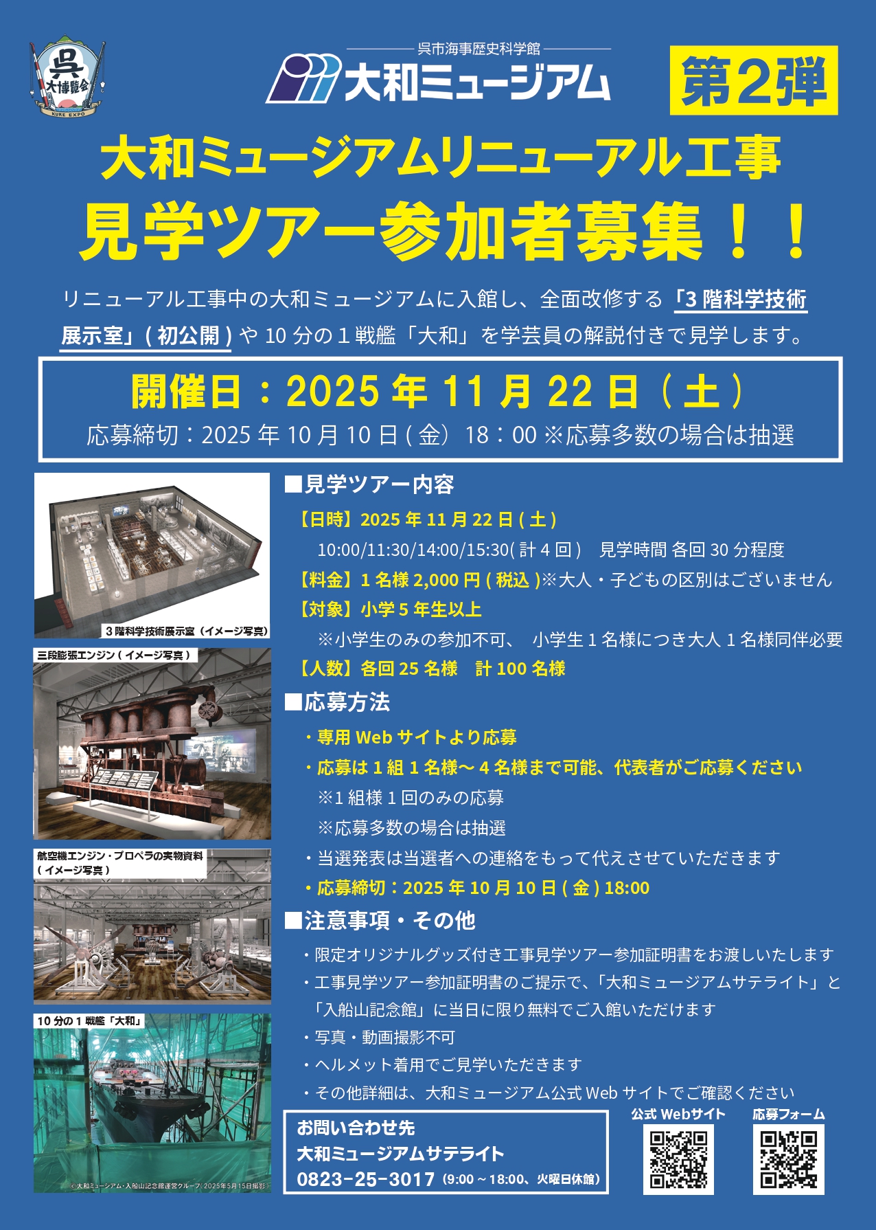 5月10日(土)に開催した「大和ミュージアムリニューアル工事見学ツアー」に続き、「大和ミュージアムリニューアル工事見学ツアー第2弾」を開催いたします。