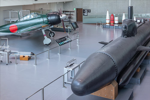 영식함상전투기 62형, 특공병기 ‘가이텐’ 10형(시작형) 등의 실물 자료를 통해 전쟁의 비참함과 평화의 소중함을 전합니다.