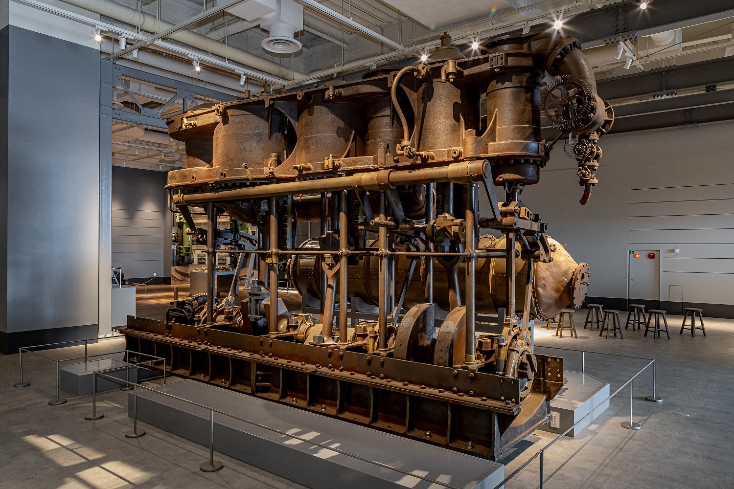航空エンジンではありませんが、明治時代の水雷艇に搭載されていた三段膨張蒸気機関エンジンは、なかなかの迫力です。